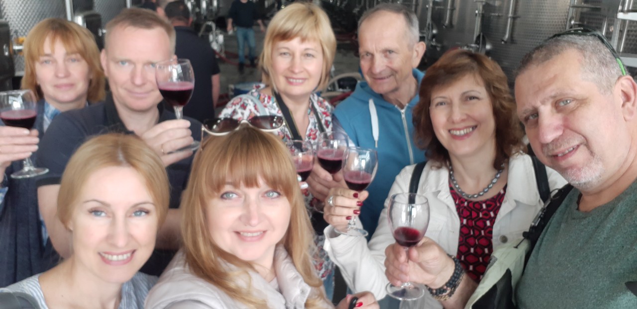 От аэропорта до Тбилиси мы ехали примерно 30 минут По приезду в отель Альянс сразу началась дегустация грузинских вин и грузинской кухни