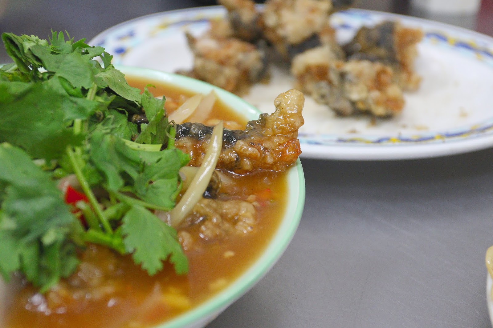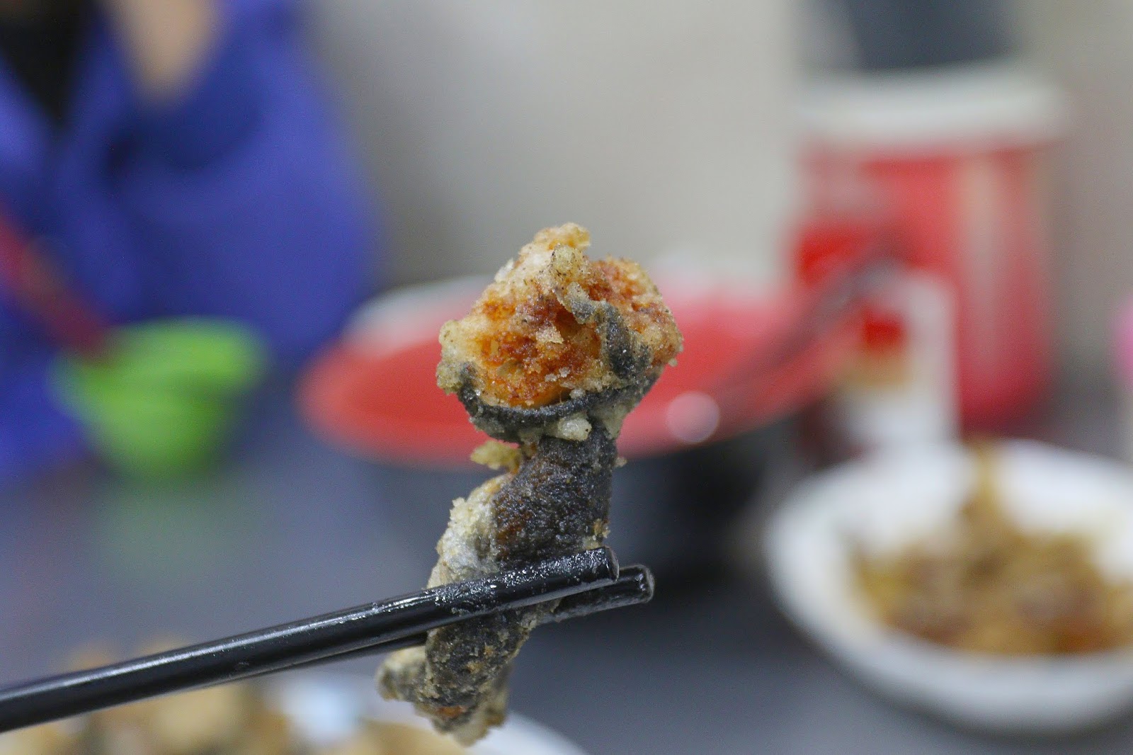 酥炸青蛙肉的口感就跟它的美名"田雞"一樣,像嫩一點的雞肉但比較有彈性,