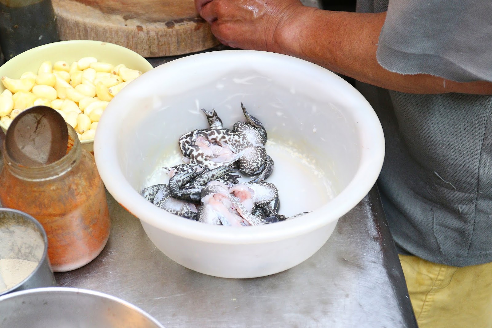 再長大一點開始會去逛傳統菜市場,就常看到有攤商在賣活的青蛙,