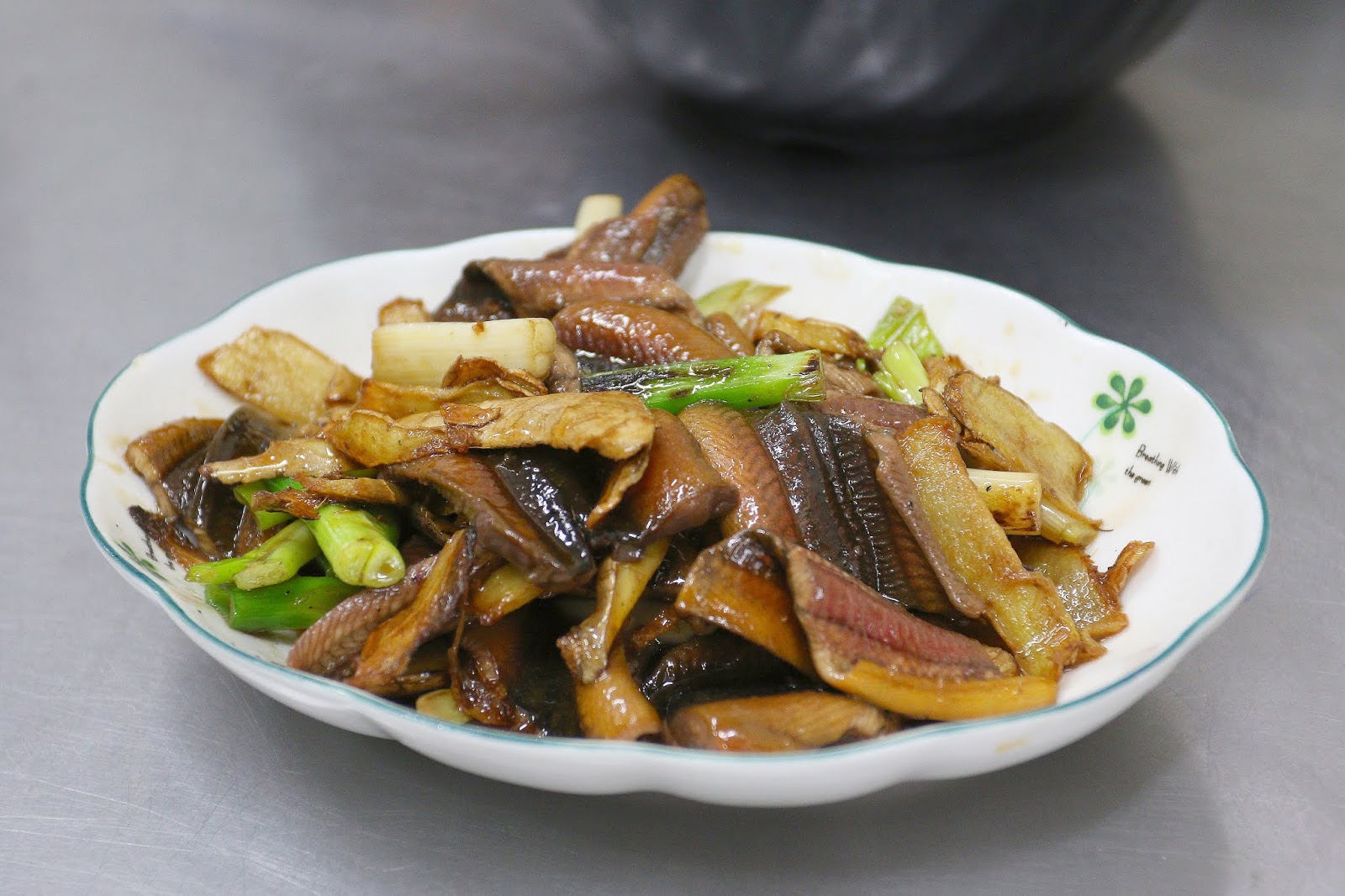 閃亮亮的麻油均勻包覆每片鱔魚,